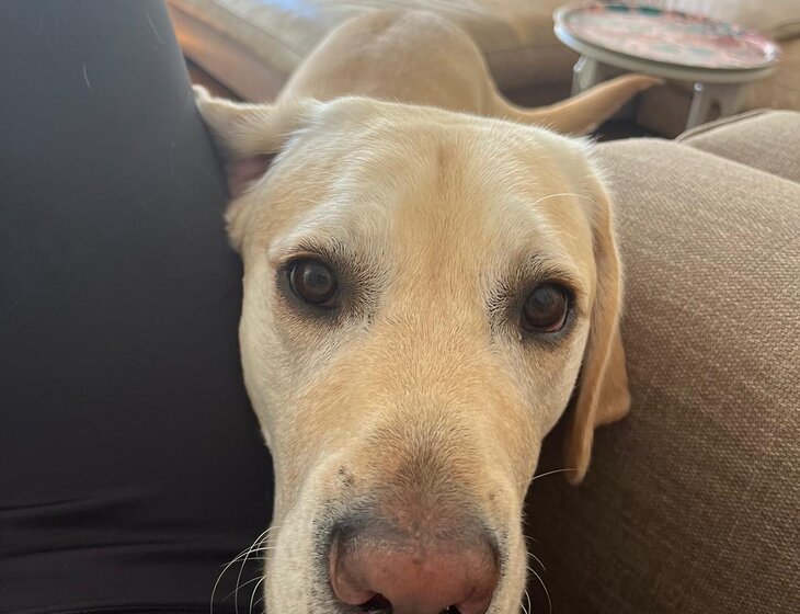 He is a therapy dog trained by the Guide Dogs so he is beautifully behaved but comes with a couple of conditions - at least a walk every morning, plus afternoon if you want to but not required if he gets a good hour in the morning; and, he can't be left alone for more than a few hours at a time.