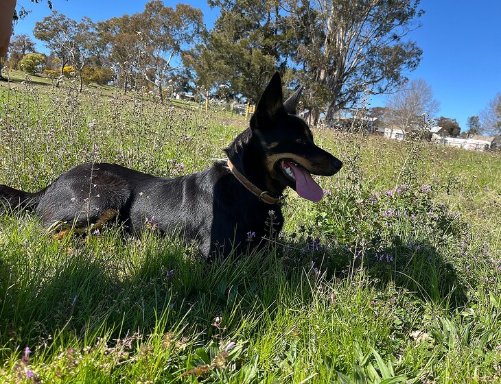 Our kelpie has a lot of energy but she sleeps very well all night. She is fully vaccinated and up to date with worming and flea treatment, so would love a walk and a few balls thrown for her.