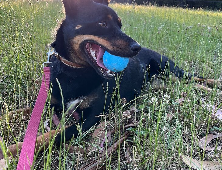Our kelpie has a lot of energy but she sleeps very well all night. She is fully vaccinated and up to date with worming and flea treatment, so would love a walk and a few balls thrown for her.