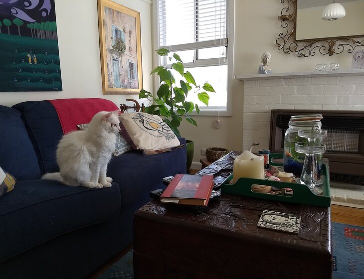 I have a timid cat that needs care while I'm away. She is a rescue cat that isn't very good with strangers, and will probably hide under the house for most of your stay. She requires gentle handling.
