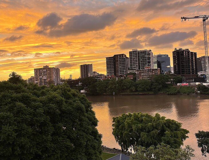 We live in a 2 bedroom (1 bike room) apartment on the Brisbane River in West End. Our complex has 2 pools, 2 gyms and it’s a 5 minute walk to Woolies, cafe and the bus stop which goes via the cultural centre to Brisbane.