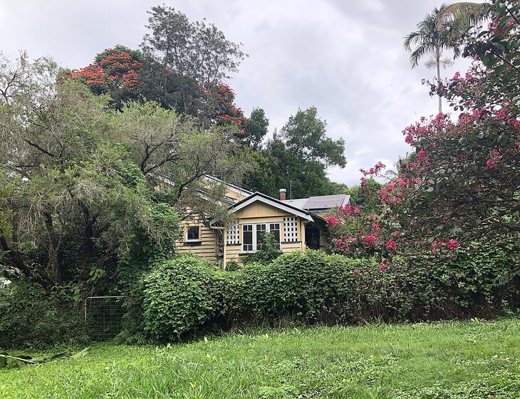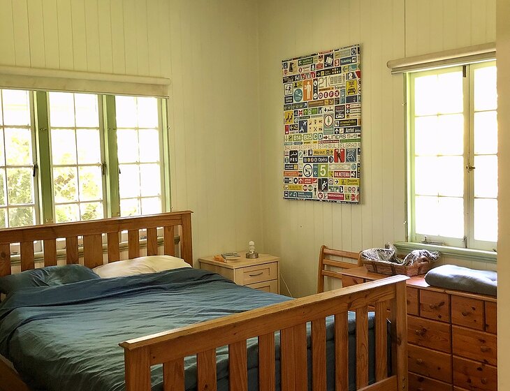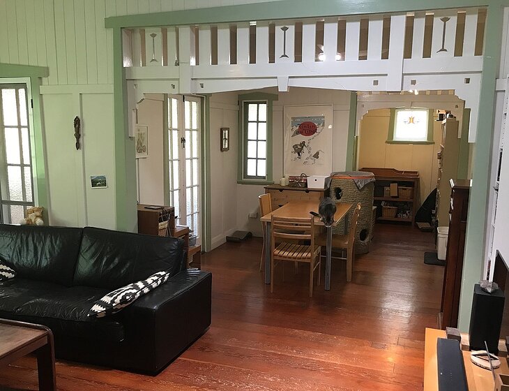 Small 1940s Queenslander, privately set in 3 acres of native forest/pasture with a fenced in veranda to enjoy "outside" time with the indoor cats. 2 bedrooms/1 bathroom and small home office. Only 10 minutes walk/2 minute drive to Woombye town with cafes, IGA, railway station and other amenities. Stay in the bush surrounded by nature but be only 20 minutes drive from Maroochydore and Beaches.