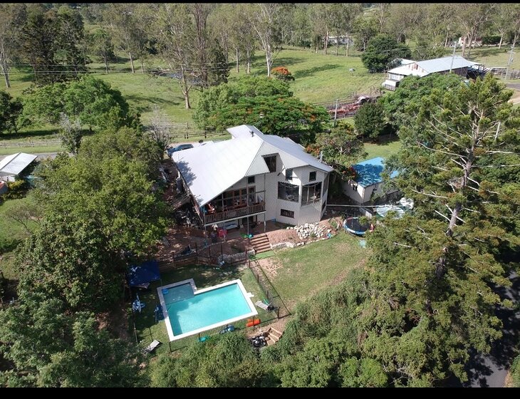 We live in a rural setting in a family home, with a large garden & swimming pool. We have 2 inside pampered dogs. We are not far from amenities and only 30 minutes to Brisbane.