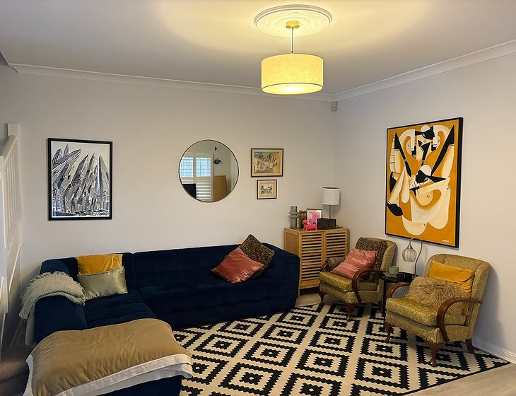 Prime location, large fully furnished modern house. With 4 bedrooms, 2.5 bathrooms, large outside patio area and north facing private garden. On doorstep to local amenities such as cafes, restaurants, parks and leisure facilities and only 15 mins driving or direct bus into Sydney CBD. The house will look after it self. The main purpose of the house sitter is to look after our very spoilt and much loved dog, Maggie. She is a 9 years old English Stafford-shire Bull Terrier. Full trained, extremely friendly to people (especially kids). Good with other dogs but prefers humans. Would need 2 walks a day and loves going for a ride in the car!