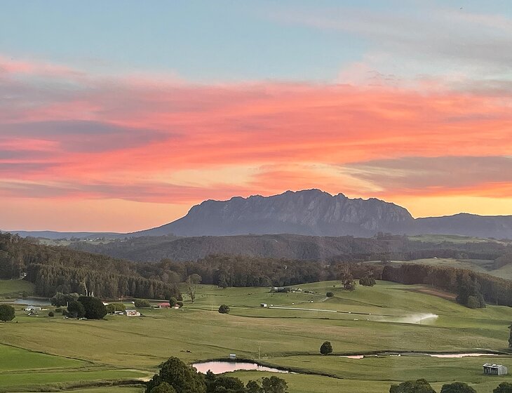 My lovely little home has 3 bedrooms 2 queen beds and a single. Large lounge with as you can see amazing views across the garden and neighbors paddocks to Mount Roland. We have a wonderfully well behaved and trained poodle called Benny. He is an inside dog but loves to be with you in the garden. I also have an aviary with finches and little parrots. They will be pretty much self sufficient but would need to be checked on to make sure their seed and water is still full.