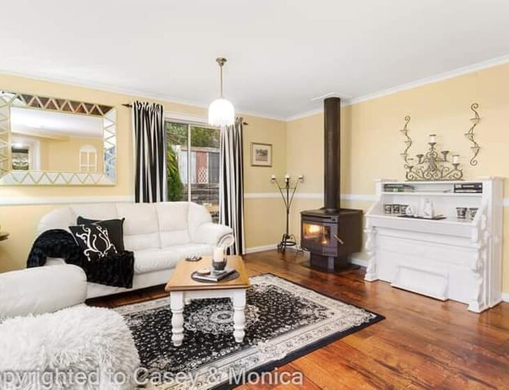 A cosy fireplace to sit by downstairs or an air con upstairs that warms or cools all bedrooms and upstairs lounge.