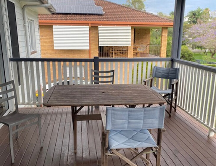 We live in a lovely 4 bedroom cottage-type home, very bright and airy, on a quiet street near all shops and bus lines. Ten minutes from Brisbane CBD. Five minutes to Kedron Brook bike/walking path. Large deck in back facing north, overlooking a quiet park filled with birds, greenery, and trees. The kitchen and bathroom have both been modernised.