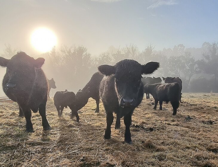 We have friendly sheep and cattle, 2 super friendly dogs and chickens.