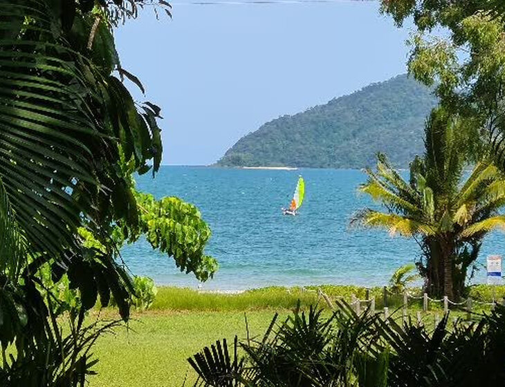 Qld., elevated pole house situated 100mtrs from beach. View from front verandah is Dunk Island. Parking in back of house. 2 bdrms up stairs and 2 office rooms below. 3 toilets & showers. Open spaced living. Some watering of plants might be needed depending on weather. A fish tank under house with fish (will need daily feeding). Laundry under house. Woolworths just 5 minutes away as are most restaurants, pharmacy, post office, police/ambulance and petrol station. Medical clinic 5 minutes away in Woolies shopping center.