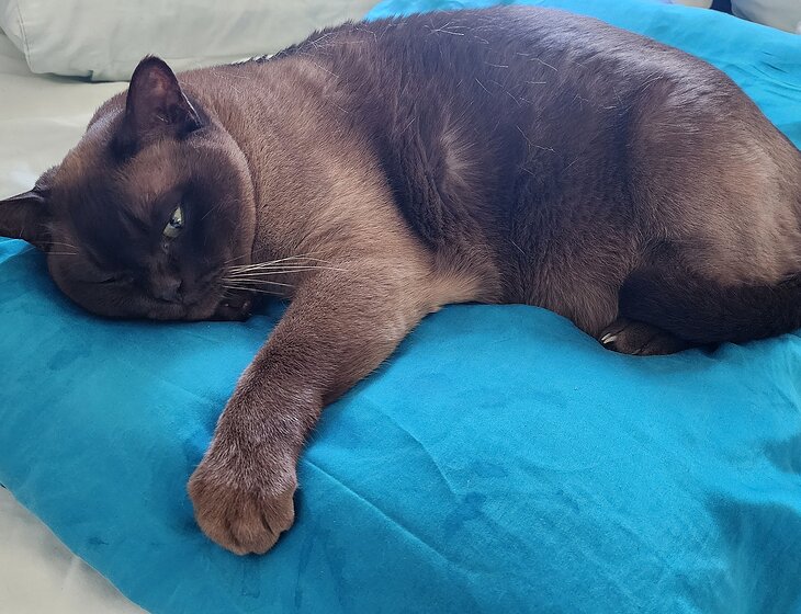 We have an 9yr old male Burmese cat (Moriarty/ aka Mozzie) who is mostly an inside cat but likes to do a couple of house laps each day.