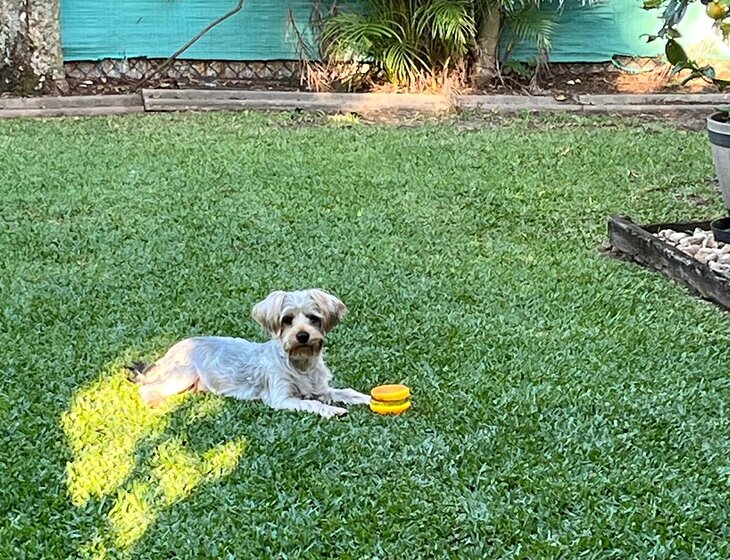 Our wee dog, Ruby loves walking every day. Ruby loves being inside but also loves playing outside in the yard