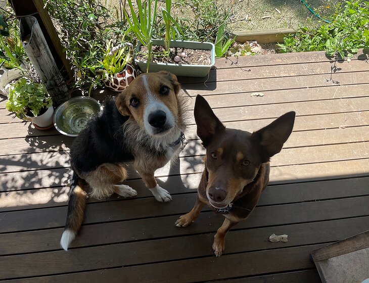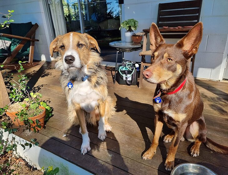 Monty is a 5yr old kelpie and Gus is a 6 yr old wolfhound x border collie.