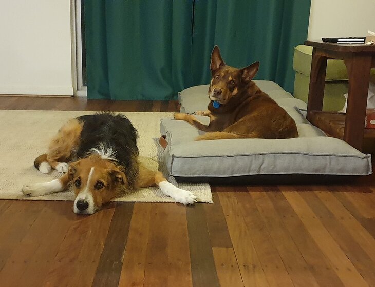 Laziest "working" dogs you will ever meet, though have plenty of energy when out for a run in the park or at the beach. Gus loves swimming, balls & sticks and Monty loves to cuddle! Both are very happy to chill at home with you after a walk/run.