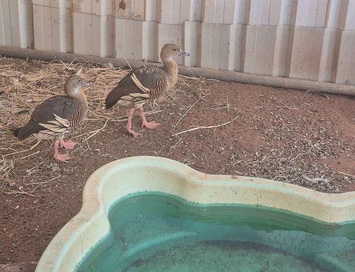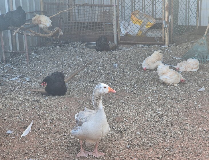 Feeding and watering 16 weiro's, 3 quail, and poultry . And one dog.