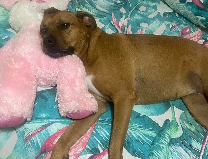 • Winnie, our affectionate Ridgeback-Boxer mix who adores cuddles and gentle walks.