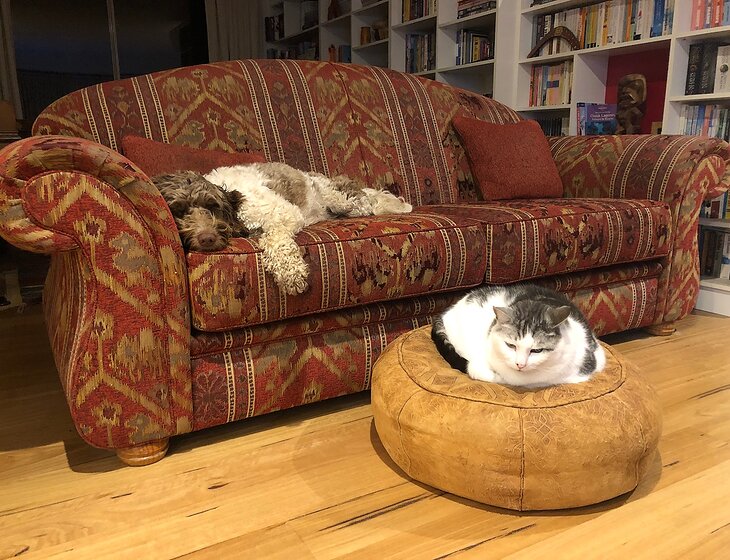 We have a 1 acre fenced family home with an affectionate and energetic 4 yr old poodle cross, Maisie, and a chill 15 yr old male cat, Billy, who do get along! Maisie loves company and dog walking would be great, along the river is lovely. Our home is peaceful and quiet and there is a host of outdoor activities on the doorstep. Gardening is not required as a gardener will take care of that.