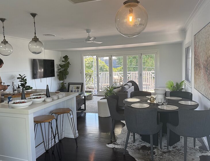 Our home is a beautiful 5 bedroom Queenslander home located 500m to the esplanade and 500m to the train station.
