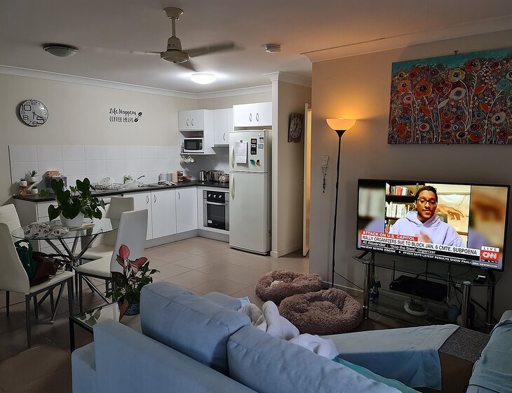 Hi. I'm looking for someone to look after my beautiful cat, Bear, for 2 weeks while I'm overseas. He's a 12.5kg love bug whose needs are simple - food and a cuddle in bed at night. He's an indoor only cat but will probably try to convince you he goes outside. He'll also try to convince you he's forgotten to be fed and it allowed unlimited snacks. All lies!! I live in Wynnum West - it's a 10-min walk to the local shopping centre and buses, and a 15-min walk to the train station. The 2 bedroom duplex is basic but nice - there's air-conditioning, unlimited NBN, Netflix etc. The neighbours are very quiet so not suited to someone who wants to party. No garden care required. My car will be in the carport while I'm away but there is street parking available.