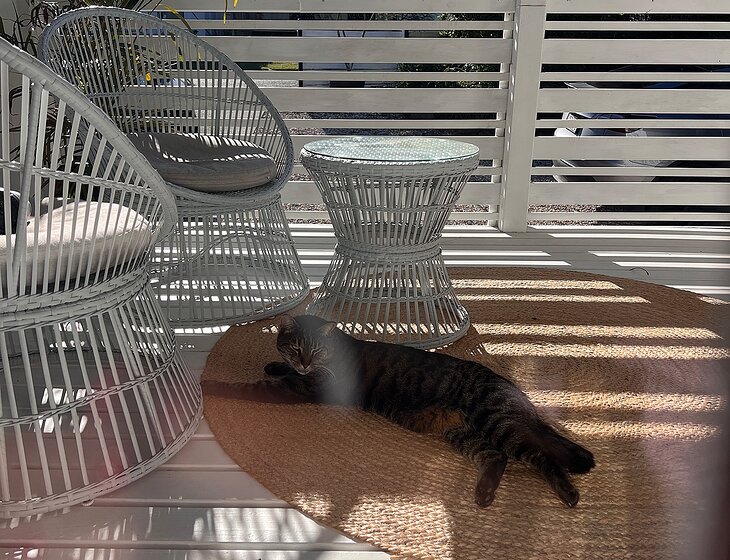 We are looking for someone to take care of our cat, Boubou, while we are in Europe, and to mow the lawn as well (probably just once during the stay).