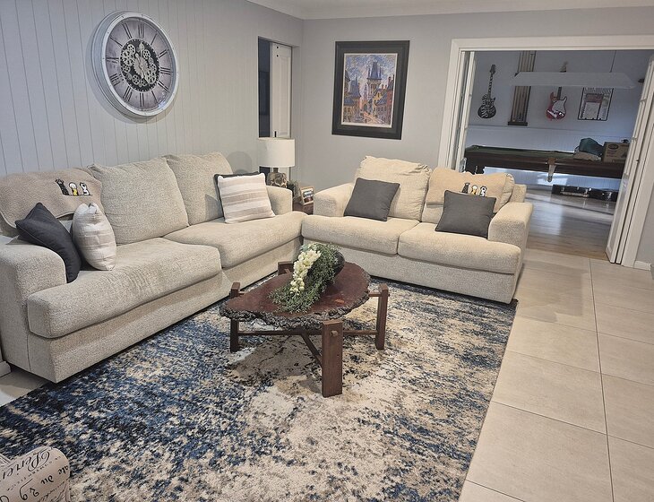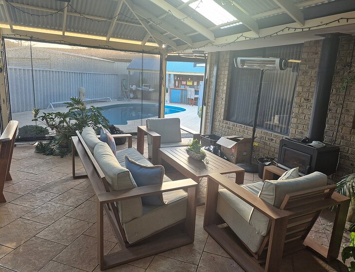 4x3 with pool, 300m walk to beach, near the lagoon beach.Walk to shopping centre with bus stop close by. We have 2 minture fox terriers who like a short walk and company.