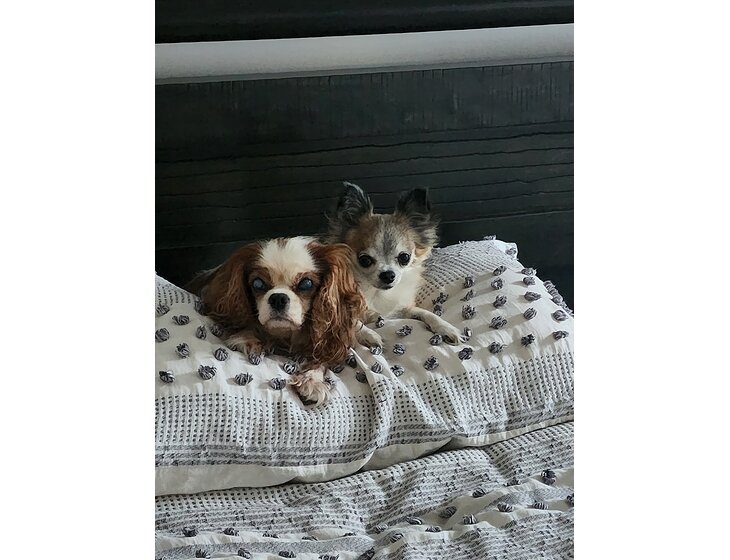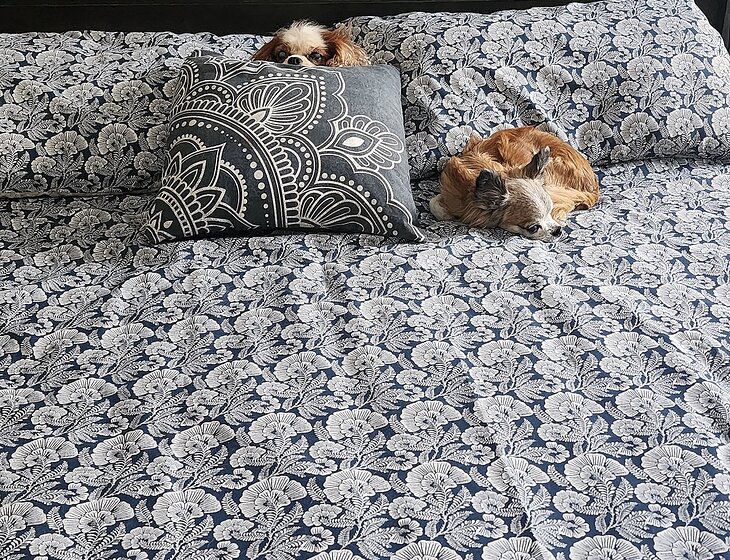 Both dogs sleep on the bed at night.