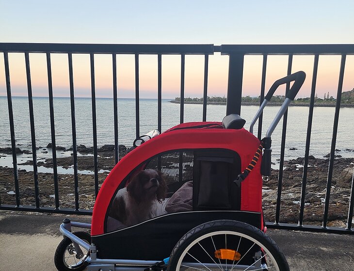 * Enjoys rides in her bike trailer
