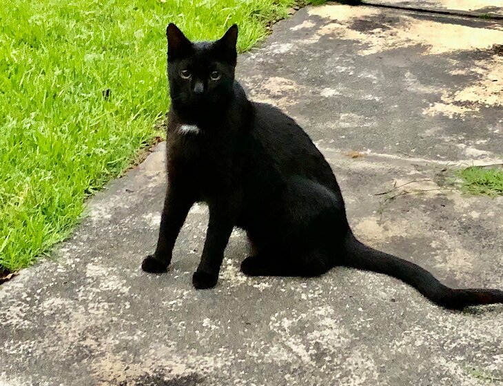 I have a 7 year old cat. His name is Charlie. There is a cat door in the living room for him and come as he pleases.He is a lovely cat with a great personality.