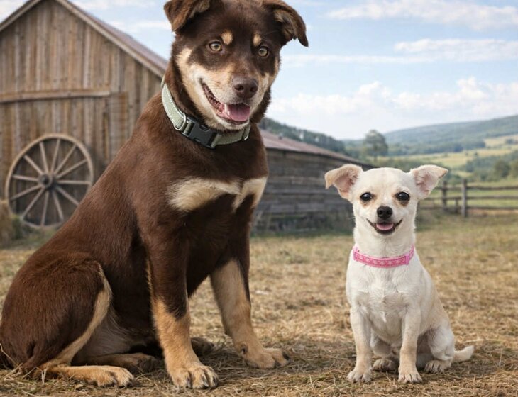 We have a chihuahua pup and a kelpie pup as well as 6 sheep.