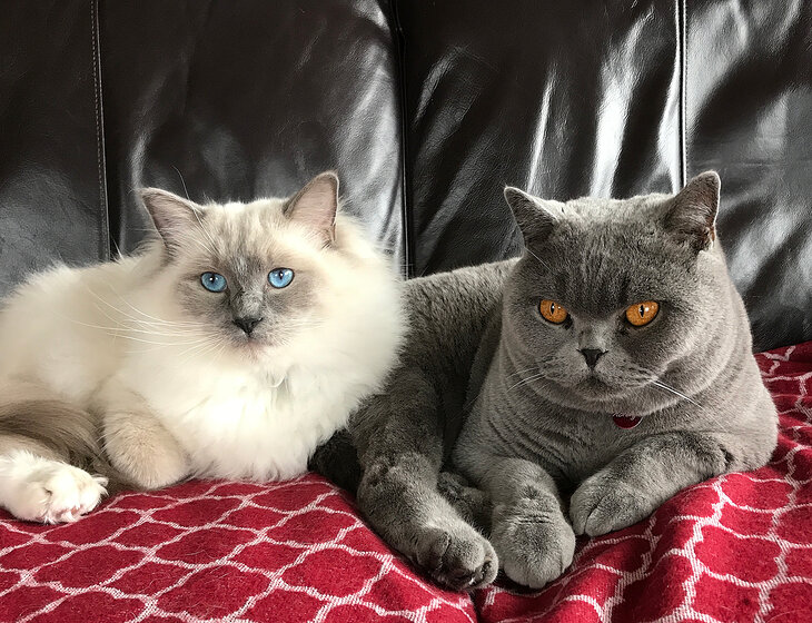 The two cats are absolutely inside cats! ie they must not be let outside under any circumstances. They will need care and attention to litter trays, water bowls and feeding. They go into the garage at night so that you will not be disturbed during the night.