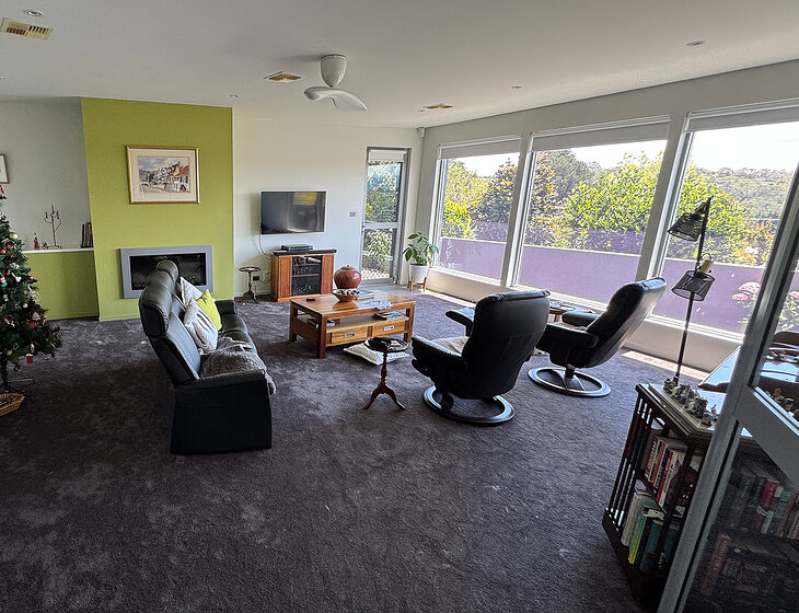 We live in a warm, modern, level home with ducted aircon, a view and 2 cats!